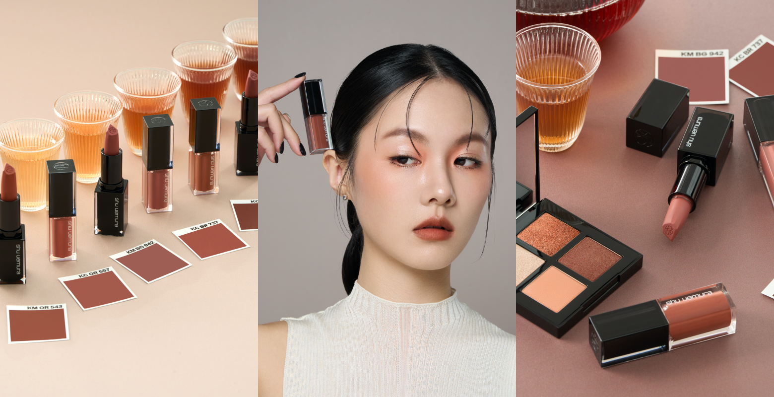 在經歷色彩繽紛的多巴胺與深棕色系的美拉德襲擊後,2024年初由玩色大師植村秀以萬眾矚目的全新調色,掀起一波色彩狂潮!那就是低飽和的大地色中,融入多樣暖色調所調配的「輕焙棕色系」,以人人都可輕鬆好駕馭的茶棕色為基礎主,透過深淺變化及加入暖棕色與煙燻玫瑰色做調和,彷彿將不同濃淡的茶轉印在彩妝品上,將原本有些沉悶的棕色帶往時髦個性的全新高度,搭起來不僅自帶高級氛圍感,柔和卻富藏個性的時髦輕焙棕色調更完美融入春季趨勢,如此迷人的配色組絕對要學起來啊~