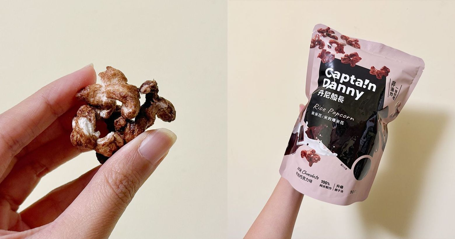 . 丹尼船長很多人應該不陌生,他很棒的是像爆米花又不是爆米花,米米花不是玉米是由米製作的唷!全程烘烤不油炸,吃起來很香很唰嘴! 這次分享牛奶巧克力口味,利用西班