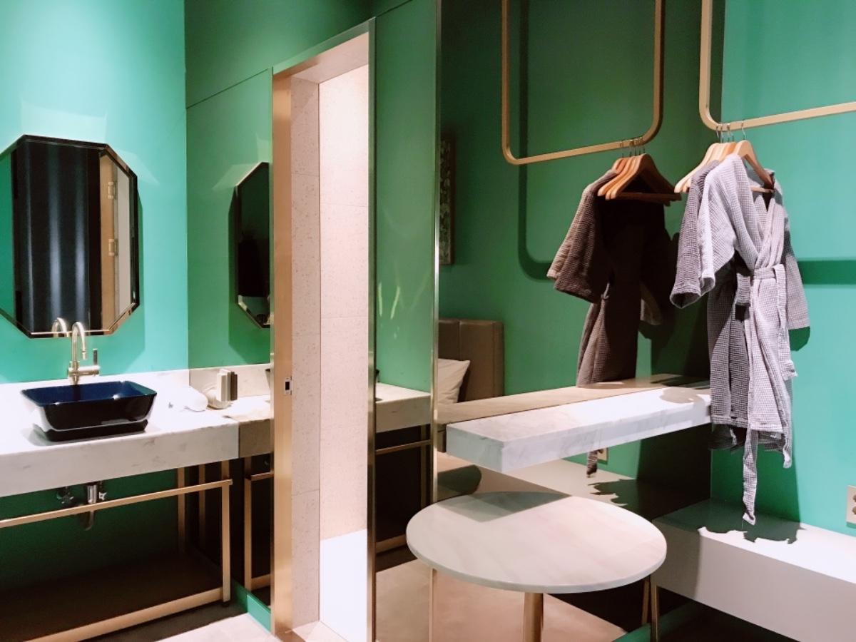 整棟飯店和房型採用大量粉色系和金屬感的傢俱和裝潢