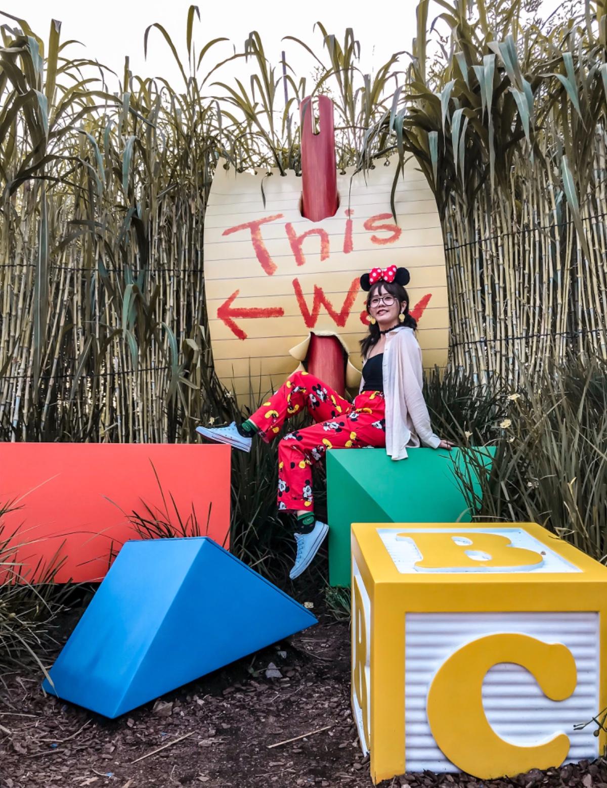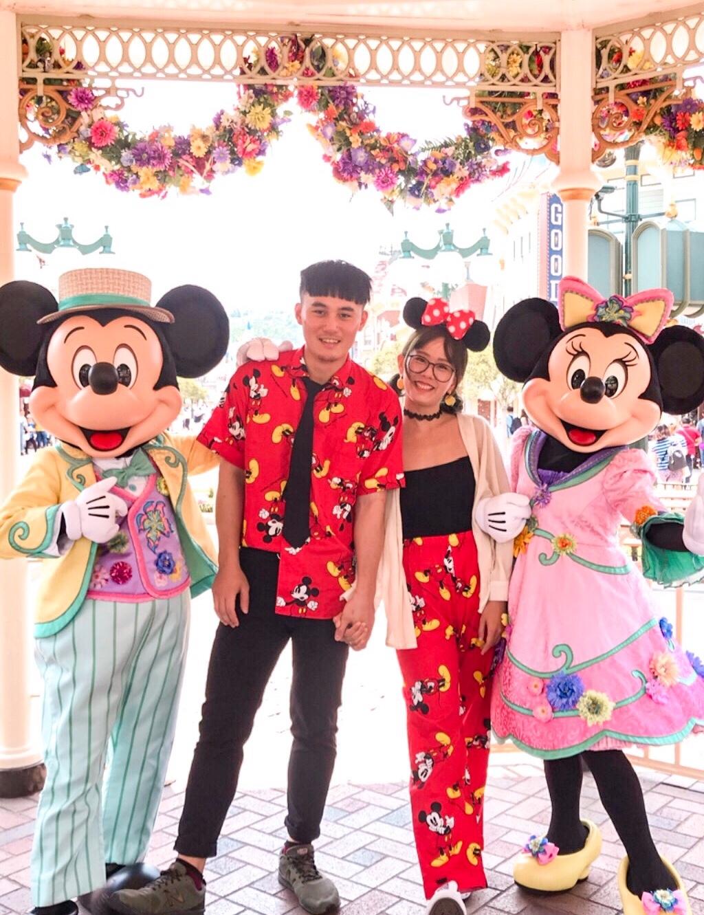 迪士尼其實很熱~為了美美的照片曬黑中暑可不值得!畢竟要玩一整天~挖到男生米奇睡衣的我腦筋動得快~決定穿上男生睡褲,而男友穿上衣,剛好成了另類情侶裝!搭配以黑紅搭配🖤❤️如果想性感就把外套拖下一下~拍完照再快速穿上😆寬鬆的睡褲反而讓這趟迪士尼不會這麼的熱~