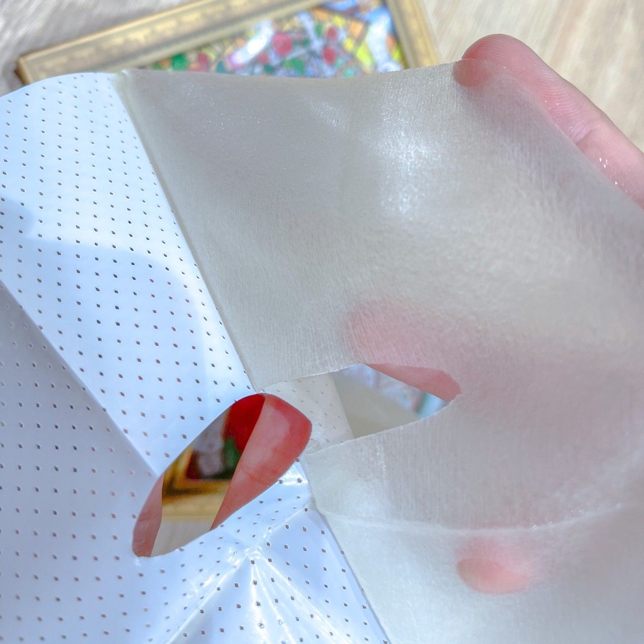 這種羽絲面膜的特性讓敷在臉上時得以感受輕薄透氣、整個和臉完全舒服的貼合!