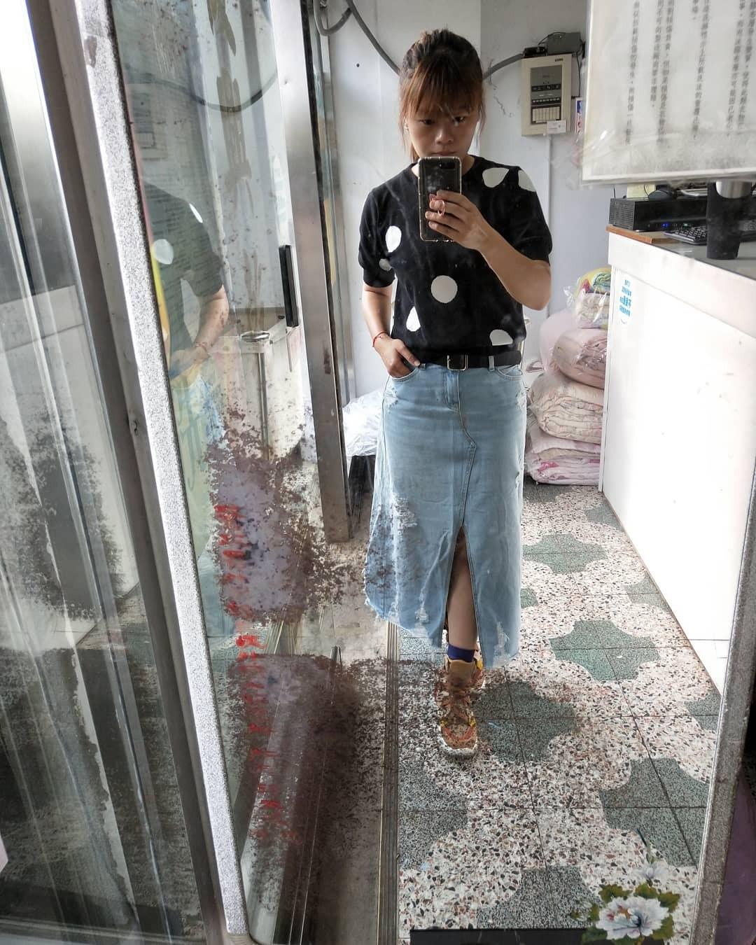 老字號洗衣店的全身鏡就這麼巧的遮住今日重點