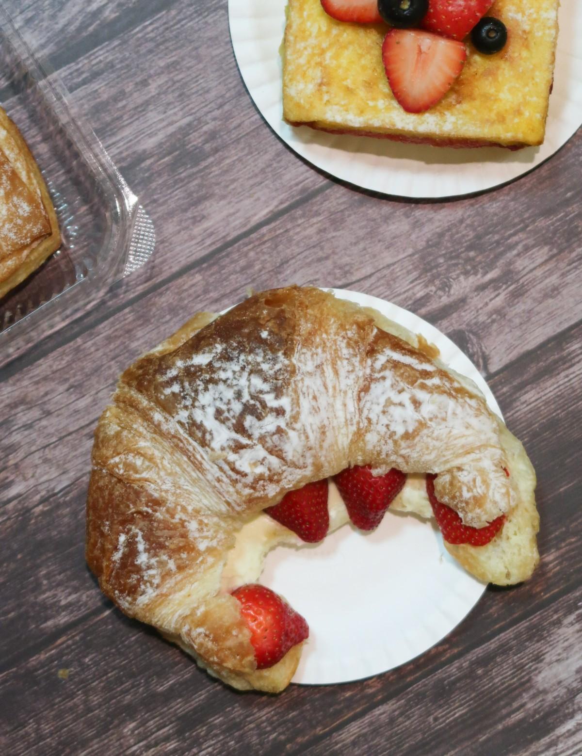 草莓珠寶盒很大一盒而且草莓好多又大顆,裡面的鮮奶油跟卡士達也都很好吃餒😍除了這款價格高其他都是銅板價格太佛心!!生乳捲微紮實冰冰的吃最好吃,草莓可頌裡面包些許卡士達,吃起來就不會那麼甜膩,丹麥派、醬吐司也都不錯,當個早餐或是下午茶都很適合。另外還有大福、銅鑼燒等大家快去現場挖寶!!!