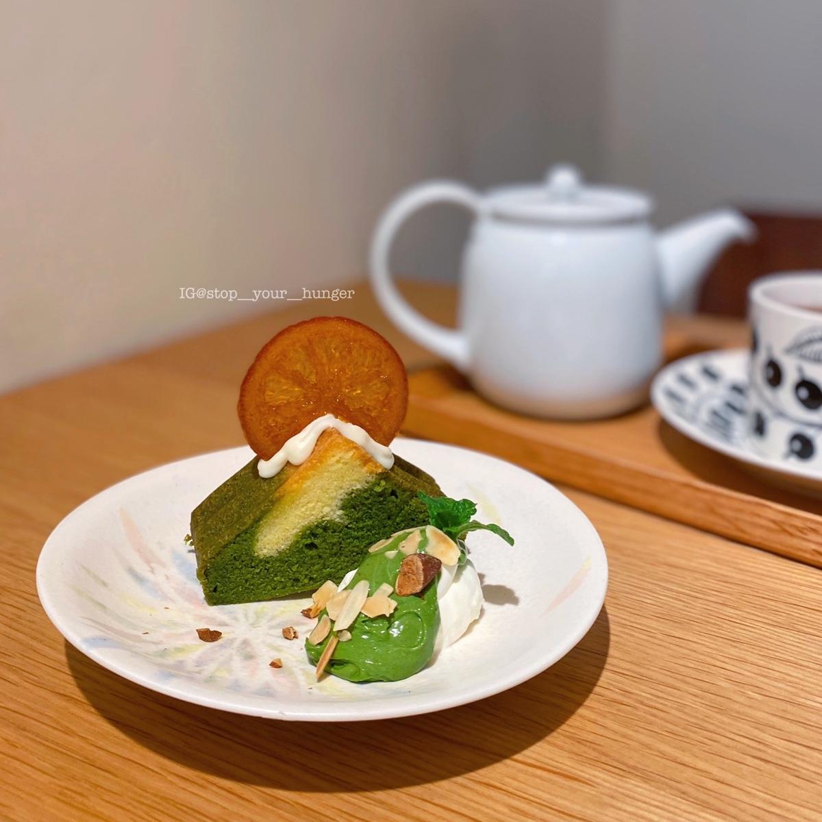 完全打破我對磅蛋糕的刻板印象!蛋糕體濕潤度夠,入口完全不會難以吞嚥👌抹味足夠,整體甜度也不高😍原本想點來解膩的茶飲一口都沒喝到,不用配上旁邊的鮮奶油跟抹茶醬就已經夠滿意了,加上去後層次感更是明顯❤️
