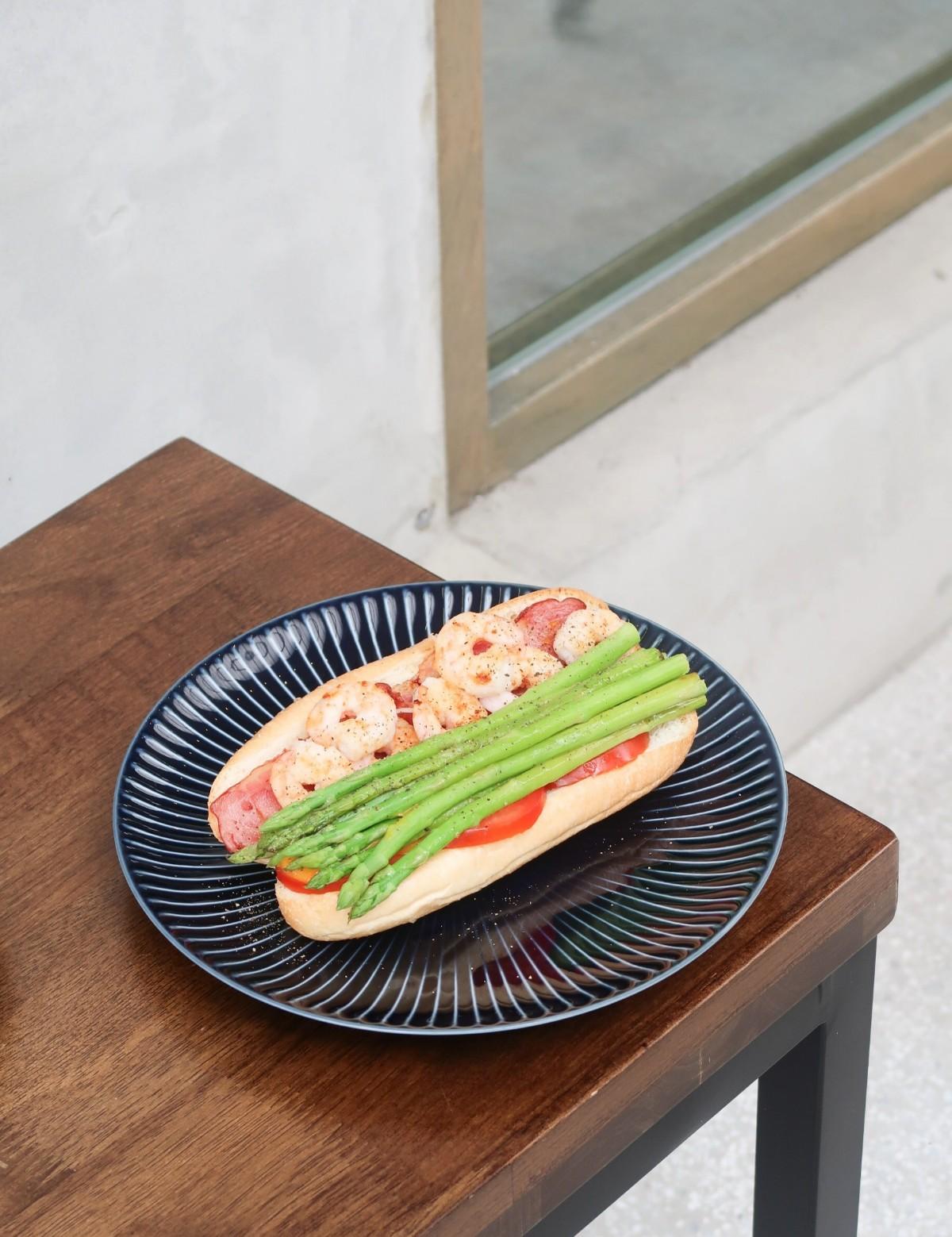 ✔ 金沙鮮蝦培根蘆筍軟法三明治 $200