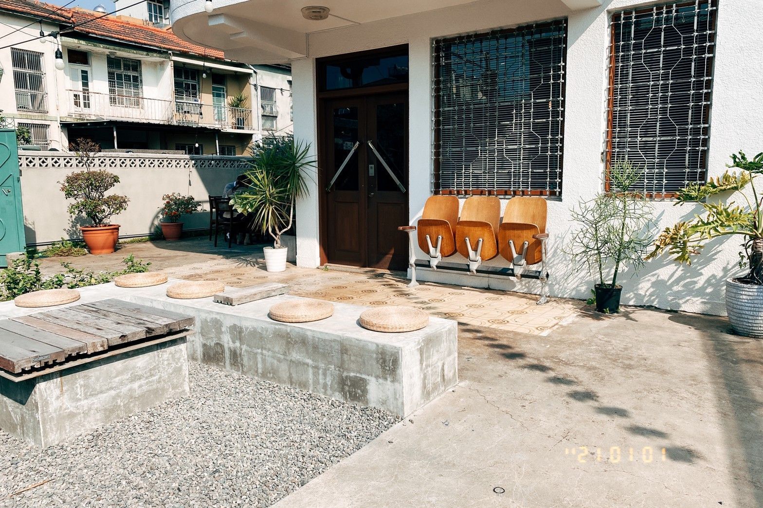 上圖就是起風的庭院,木門進去就是室內坐位區,室外座位區在左側有兩桌雙人桌,右側則有兩桌長方形坐位,約莫可坐六到八人。L型坐位區也可以坐,但當天大家都沒坐那(不知道是不是太熱?)。