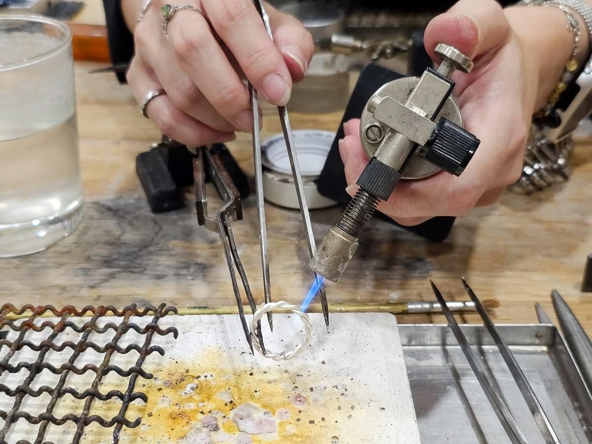 跟好姐妹一起DIY玩戒指 一點也不難很有成就感 但因為師傅會進行最後精修 加強小細節的修飾 當天無法帶回家喔! #銀戀