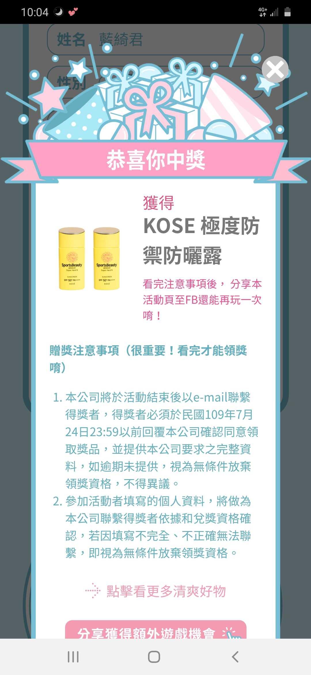 請問一下,暑假參加的這個活動 抽到兩瓶防曬露(圖片是我截圖的)還未收到,請問是什麼時候會寄出呢? 還有開提醒領小禮物的,我有搶到理膚寶水的淨痘無瑕極效精華DUO試用包+毛孔緊緻控油保濕乳試用包也還未領到請問什麼時候會寄出呢?