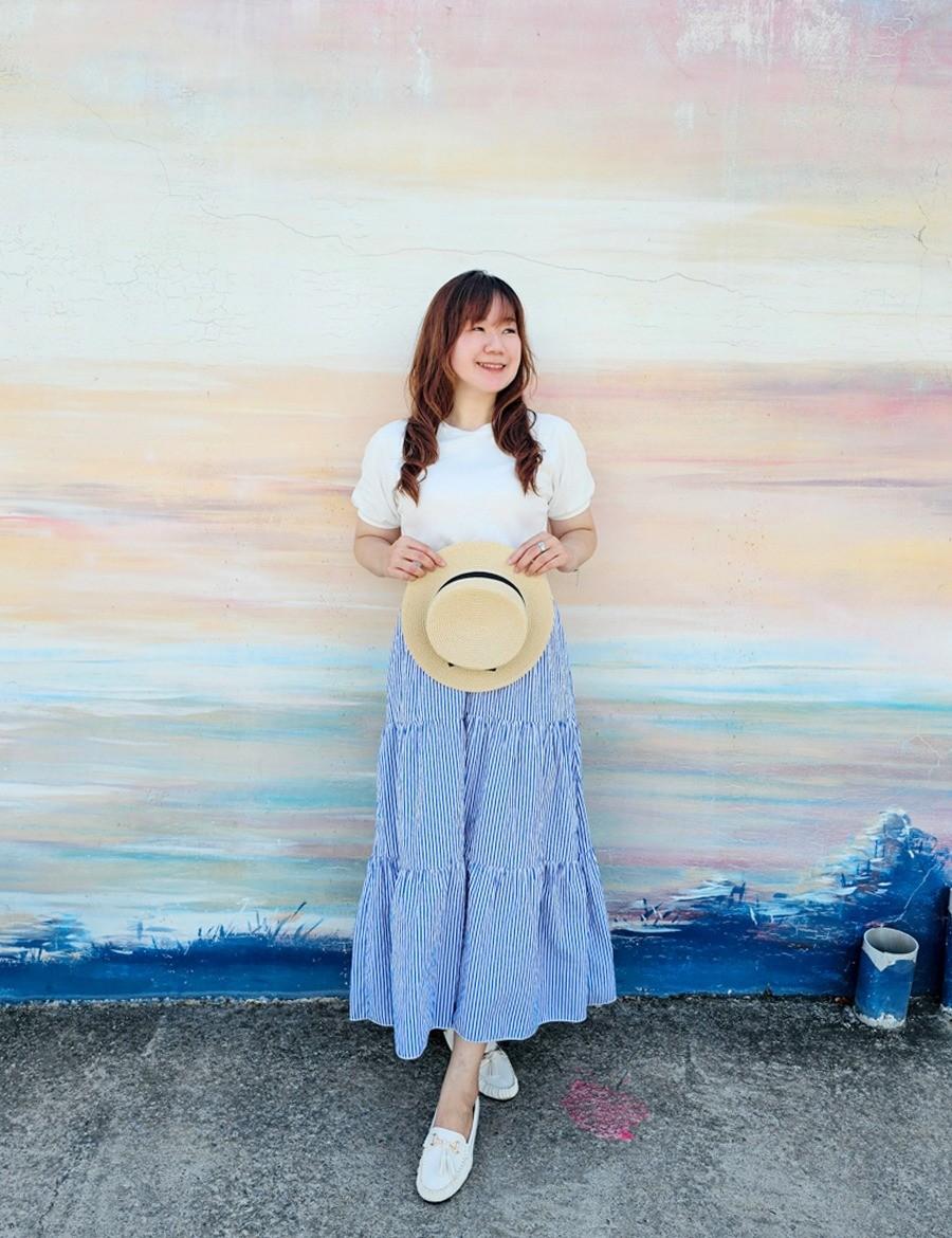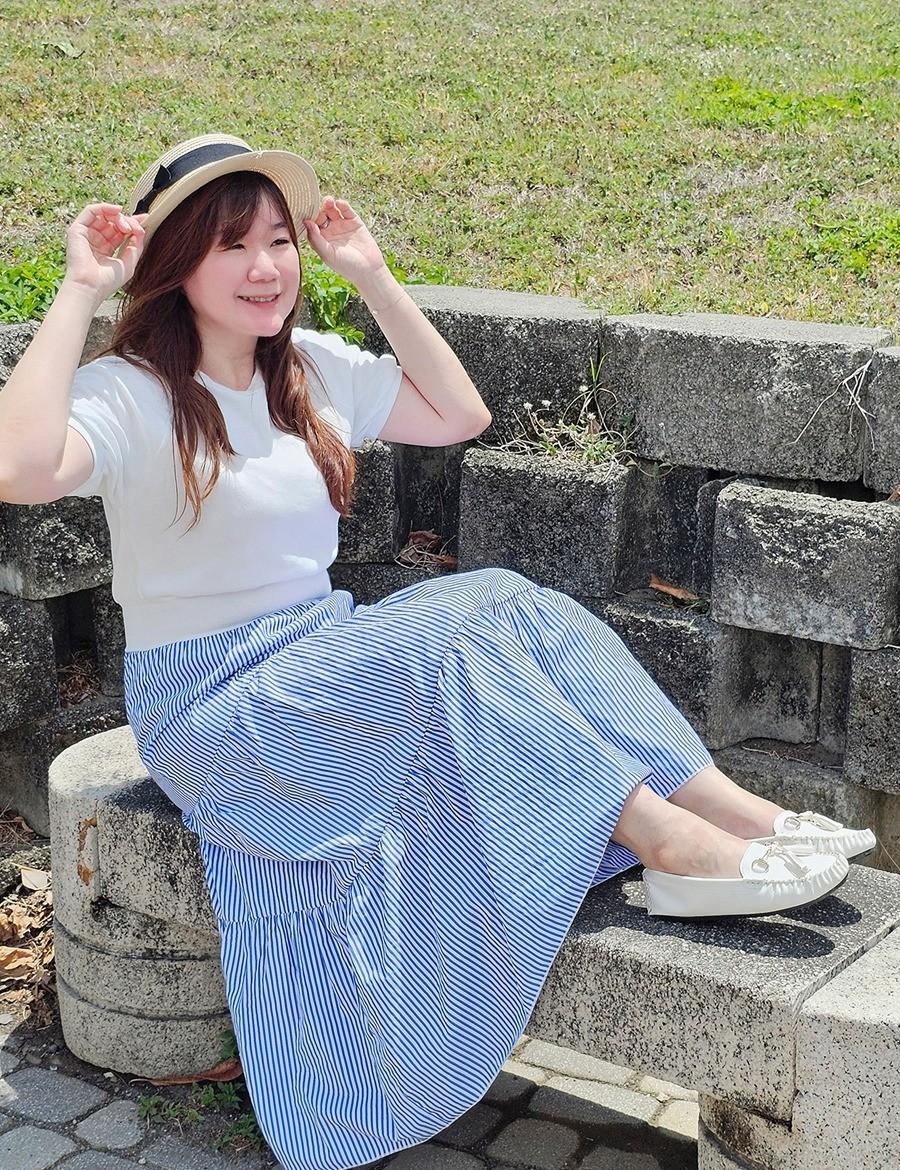 🎀優雅假兩件條紋抓皺收腰圓領短袖洋裝懶人穿搭法一件就搞定韓國製,材質柔軟親膚到海邊玩最適合的海洋風⛱️針織白色上衣搭配藍白條紋裙拍照超美還有縮腰的修飾效果很顯瘦提升日常穿著品味🌹