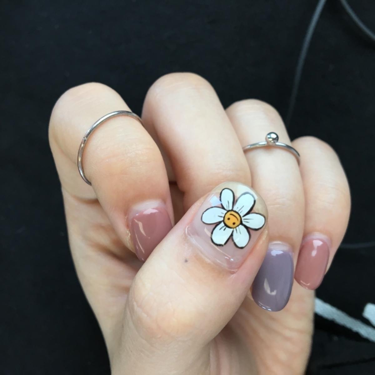 第一次做光療彩繪❤️每天一直看指甲 真的太喜歡小花了🌼