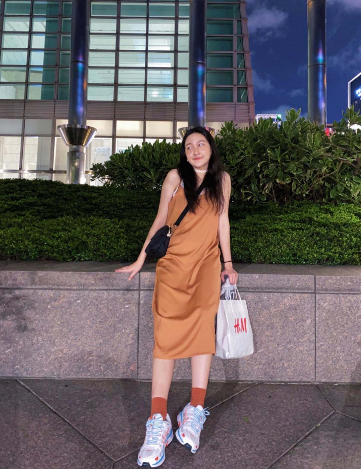 這次走休閒路線 一件洋裝直接不用想上下半身要怎麼搭配 今年也很流行這種氣質細肩洋裝 選了個亮色系的橘色🧡 搭配同色系的襪子做呼應 #niootd #穿搭分享