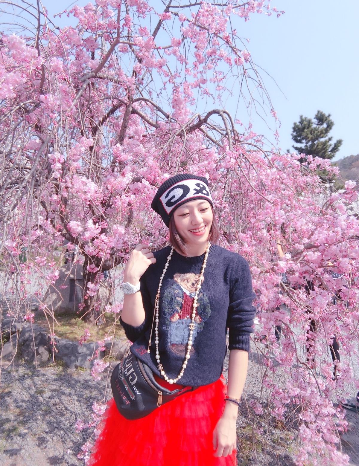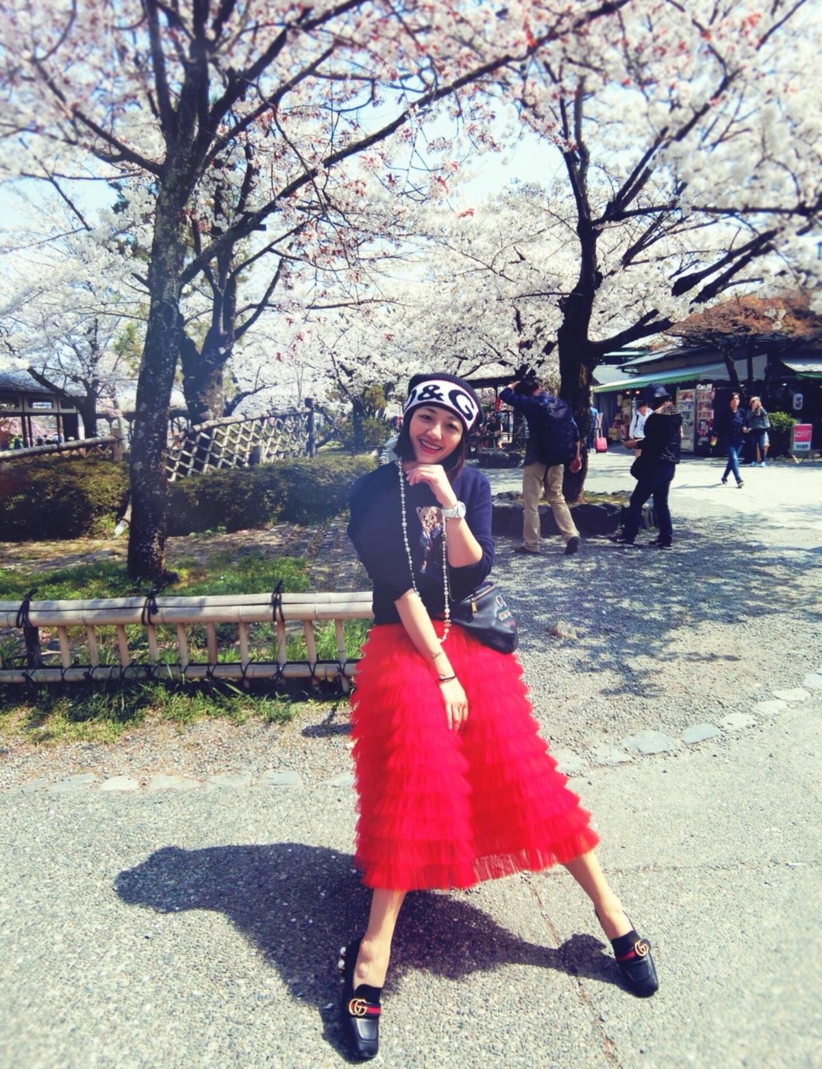 🌸 🌸🌸🌸🌸 📍大阪 #sakura #賞櫻 #大阪 #日本景點 #親子裝 #紅裙 #guccibeltbag #gucci腰包