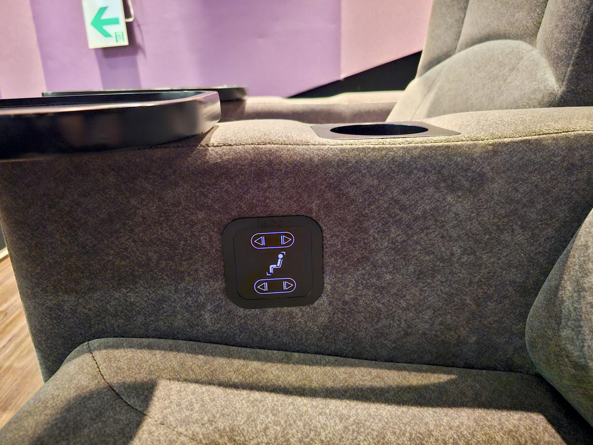 高雄大立in89豪華影城COACH廳有配備杯架、木質旋轉桌抬,USB快充座,瑞典毛毯、餐點托盤、濕紙巾、空氣香氛的服務