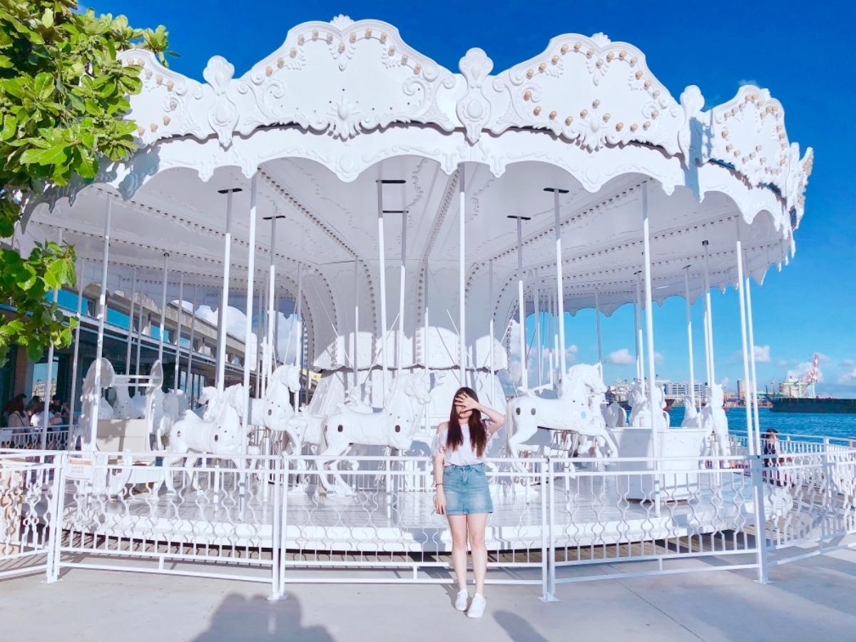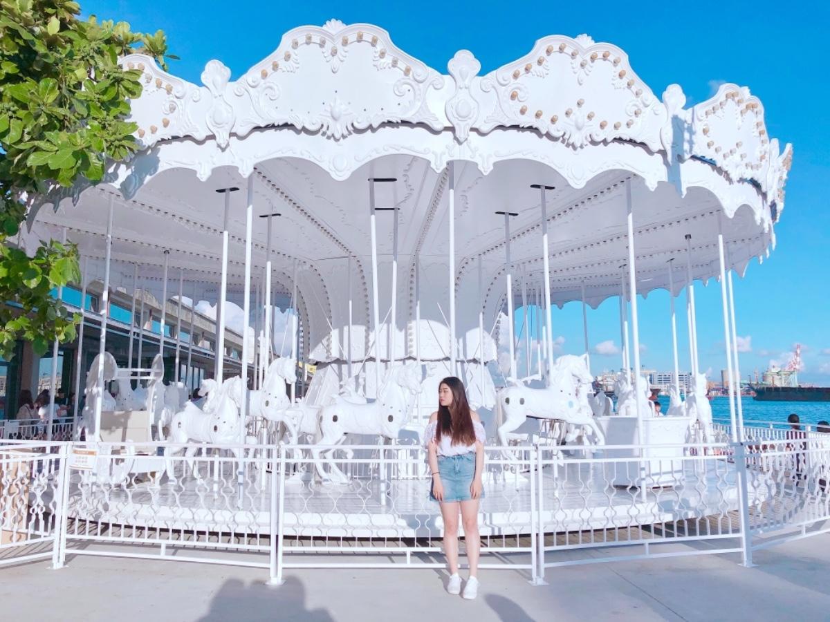 ❣️[棧貳庫 ] 白色旋轉木馬真的很浪漫 而且旁邊就有好逛好吃的 另一邊是港口 還可以看海(?)🤭 IG: uni_o524 #kaohsiung#高雄景點#駁二藝術特區 #棧貳庫#白色旋轉木馬#🧡🧡🧡🧡🧡