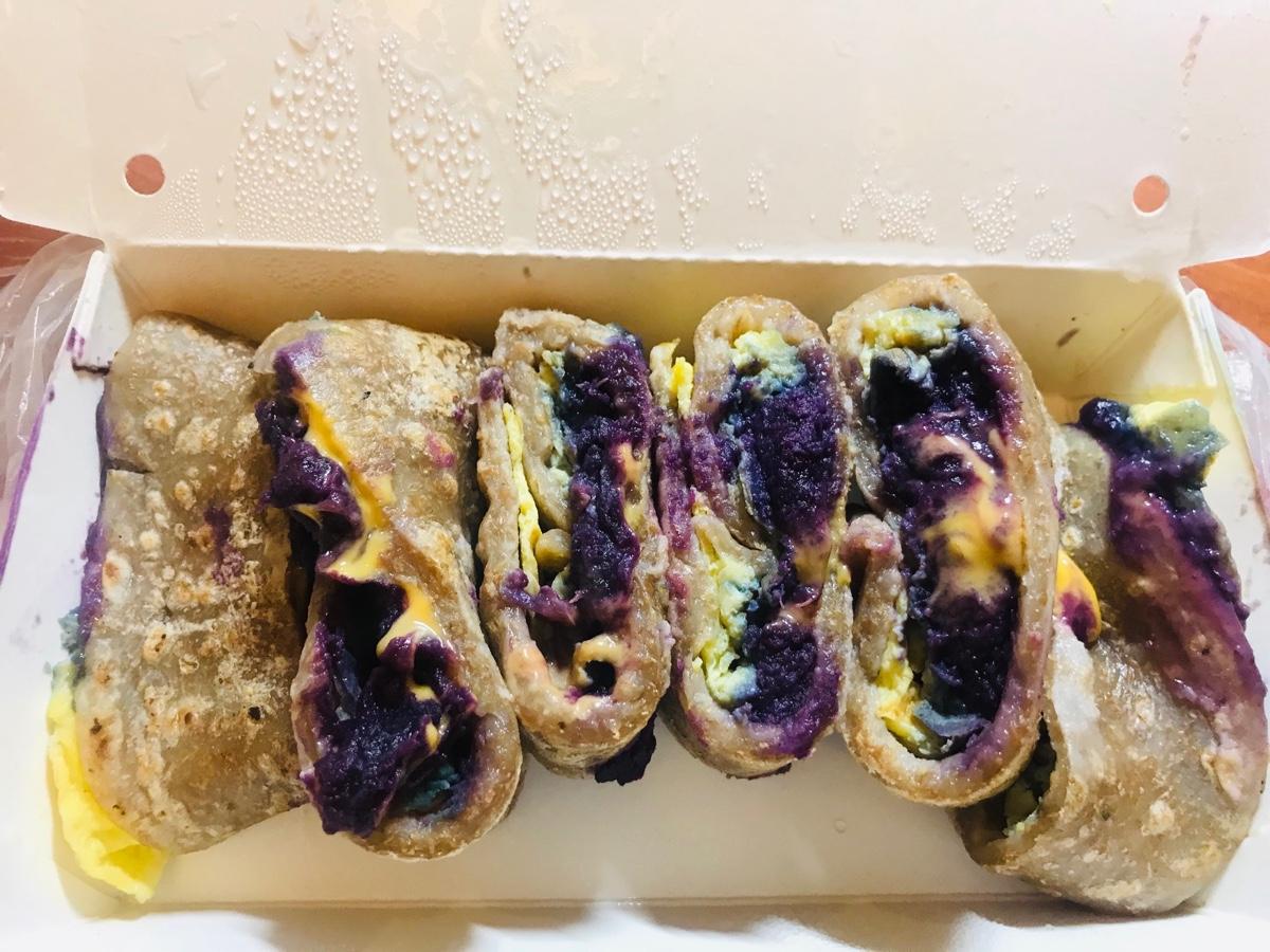 紫地瓜起司全麥蛋餅