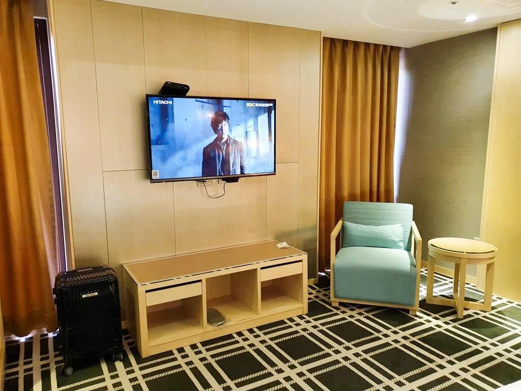 捷運通車後來台中旅遊更方便了🚈鄰近捷運文心崇德站的世聯商旅,備有停車場,浪漫吊燈+king size特大床超讚啊!怎麼翻都好速西🛏房間可以打開兩個行李箱沒問題👌浴室有乾溼分離跟蛋型浴缸,乾淨度💯隔天早餐是麥當勞,12點才退房很悠閒🎏