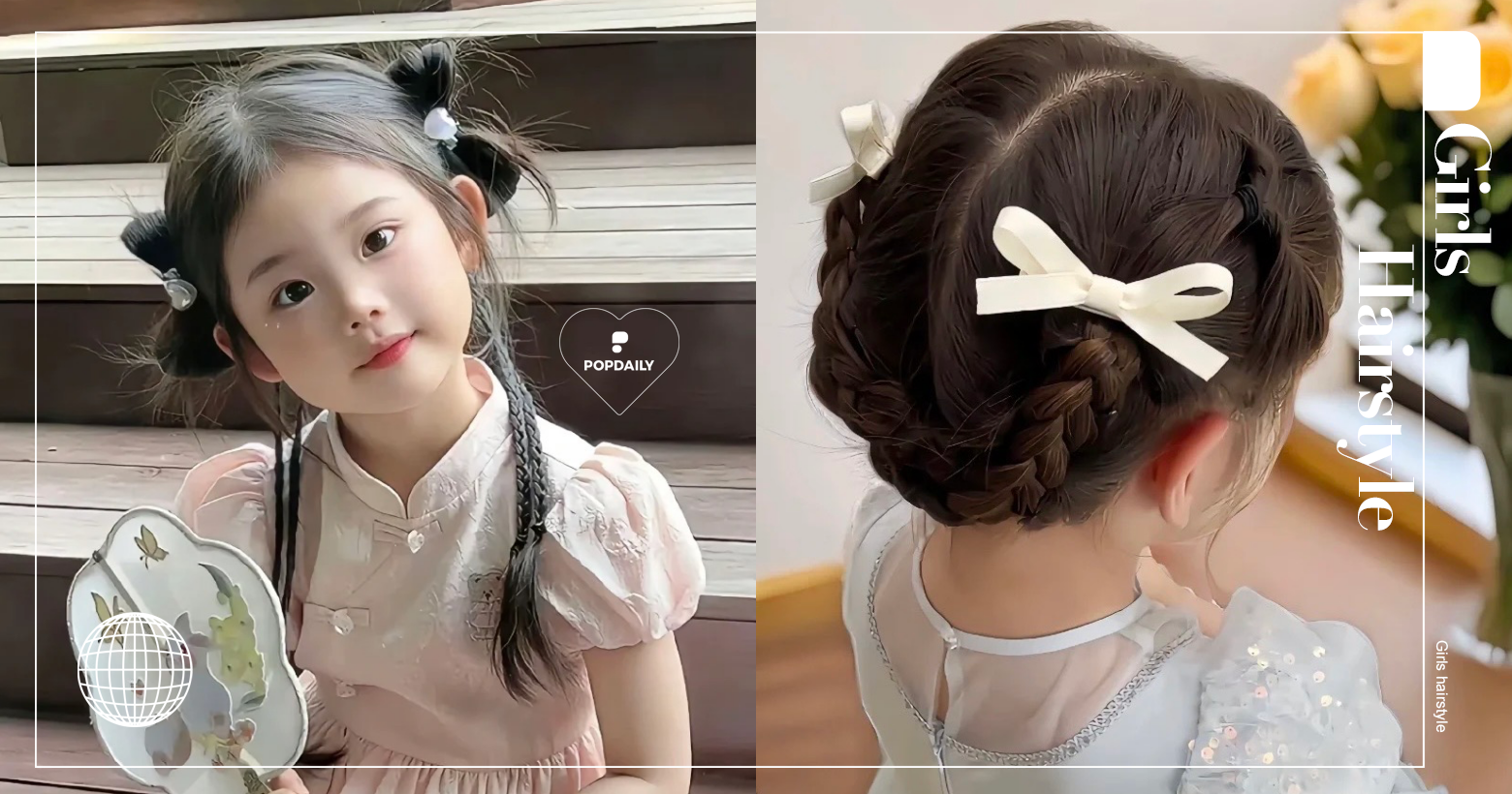 這款髮型的最大亮點就是將兩次的頭髮綁成蝴蝶結,像是貓咪的耳朵一樣,既可愛又非常符合當前的流行趨勢。蝴蝶結的設計增添了俏皮感,讓整體髮型更加可愛,特別是在夏季的派對或戶外活動中,又能展現出活潑、甜美的風格,讓小女孩在人群中格外吸睛。