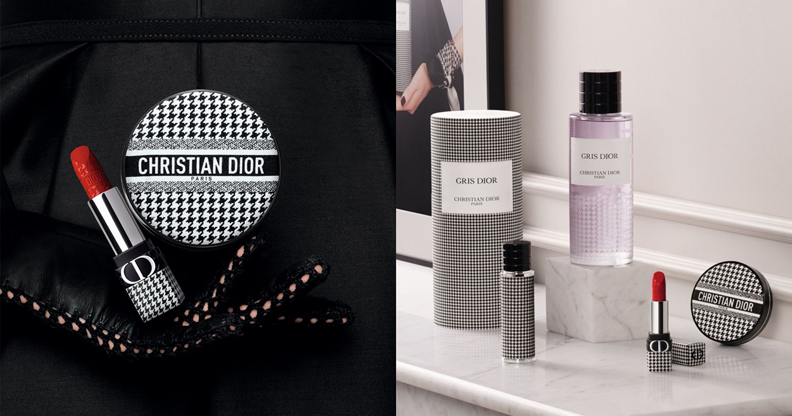 今年,迪奧全球彩妝創意形象總監PETER PHILIPS以「千鳥格紋」為靈感,精心詮釋經典時尚,並首次與香氛結合,發想一系列限量單品,將《迪奧超完美氣墊粉餅》、《迪奧藍星唇膏》與《迪奧香氛世家系列》換上 「新裝」,披上DIOR高訂經典的「千鳥格紋」緹花圖騰,雋永優雅又充滿細節的元素,完美展現高訂中細緻非 凡的訂製工藝,宛若精品在手。