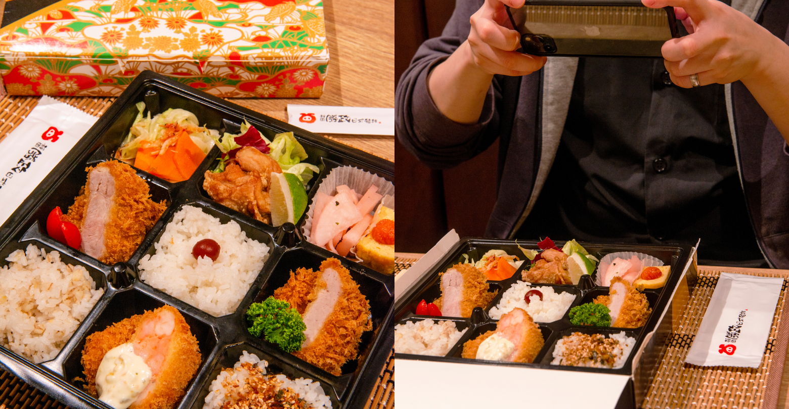 位在GlobalMall 南港車站-環球購物中心內的勝政日式豬排南港店,於7/1起集結店舖經典佳餚,售價250元的「雙鐵便當」能享用四種主餐,有口感軟嫩的腰內豬排、肉汁飽滿又扎實的里肌豬排、鮮美蝦排、和風雞塊共四大日式經典炸物,同時為了增加營養均衡,也加入富含濃郁香氣的櫻花蝦高麗菜,當然也不能少了日式便當必備的明太子玉子燒、醃漬物,主食更囊括原味的越光米飯,以及健康的燕麥飯,可口的海苔香鬆飯共三種滋味,以每一道料理風味都不雜混,充滿講究的高級餐盒「九宮格便當」呈現,讓「雙鐵便當」吃起來精緻滿足一點都不無聊。