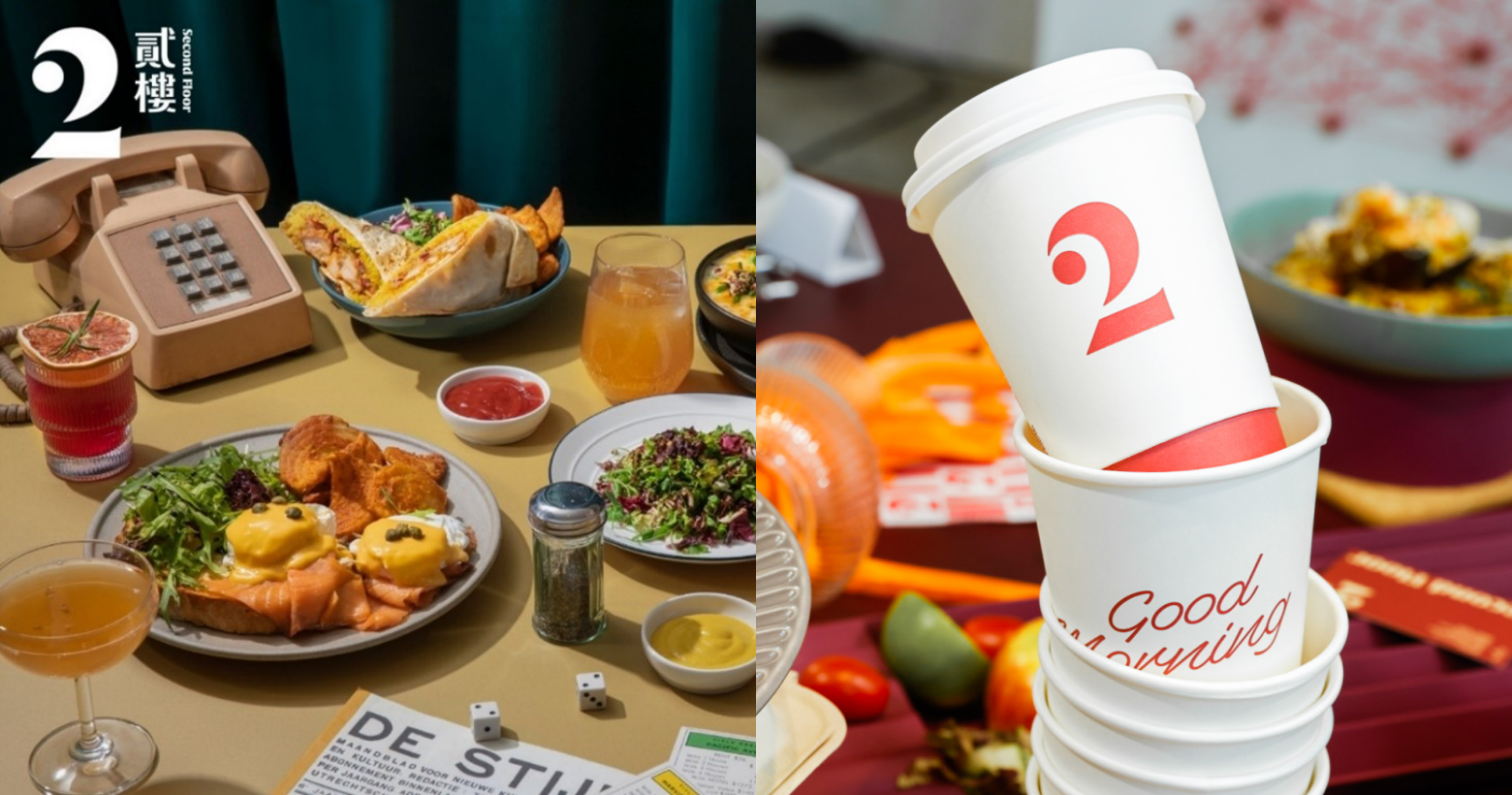共融美好的概念也延續在15週年的全新菜單上,以友善身體與環境為理念,結合經典回歸的人氣餐點,以美式復古的創意設計,收錄著貳樓15年來的美好日常,從第一間敦南店的老照片、公益捐助的行動、寵物友善的服務等,造就了貳樓與你我之間美好的延續。
