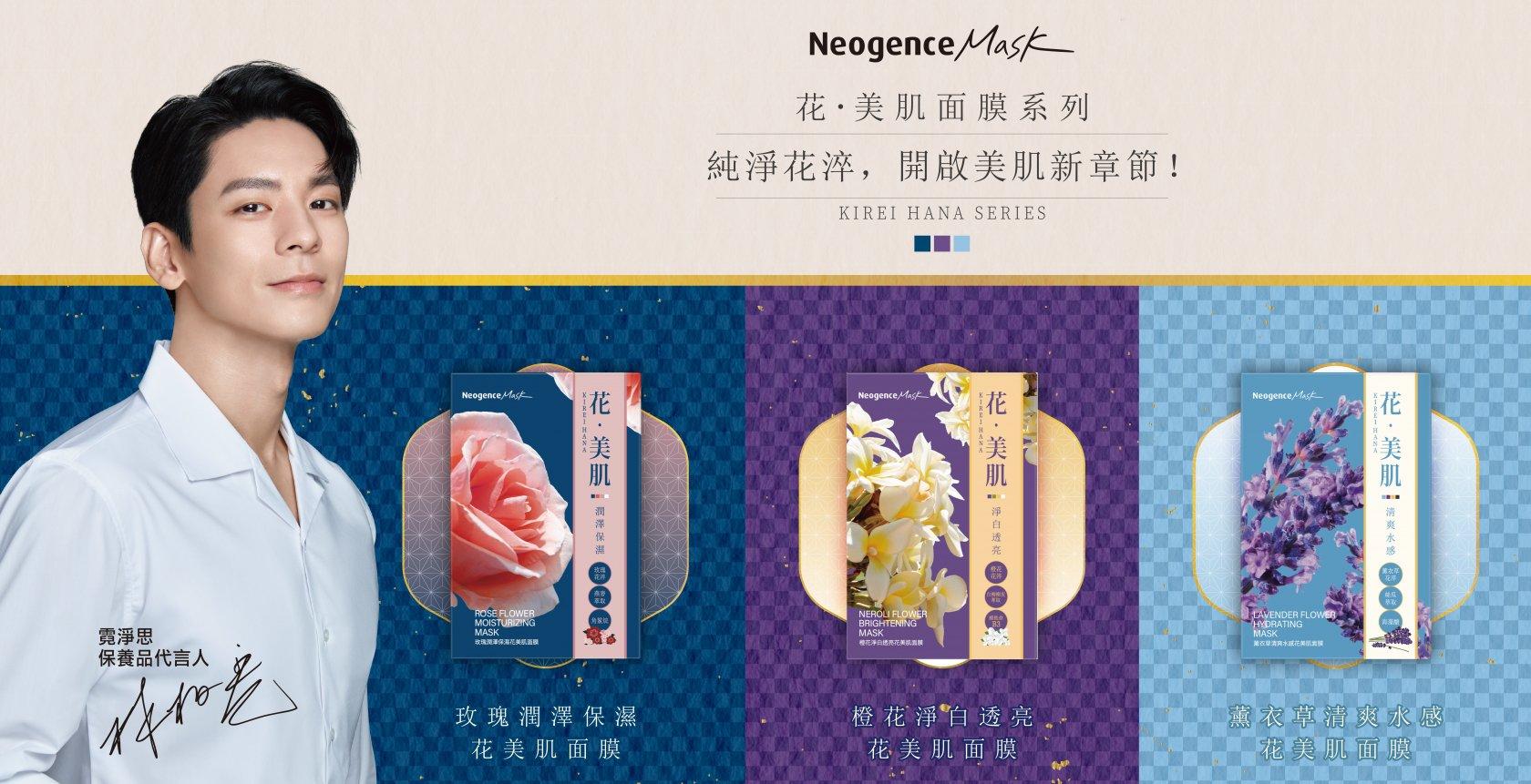 台灣醫美保養品牌Neogence霓淨思以科學實證為依歸,秉持嚴謹態度與實證精神,持續研究創新,每個環節細心把關,打造高效、純粹、友善的保養品,做到「專業肌膚保養,美好生活體驗」。全新「花‧美肌面膜系列」,將源自天然的花淬精華注入每一片面膜,以10%花淬為核心,結合植萃與醫美成分雙效加乘,推出潤澤保濕、清爽水感、淨白透亮面膜,彷彿置身日式療癒花園,讓純淨花淬,開啟美肌新章節!
