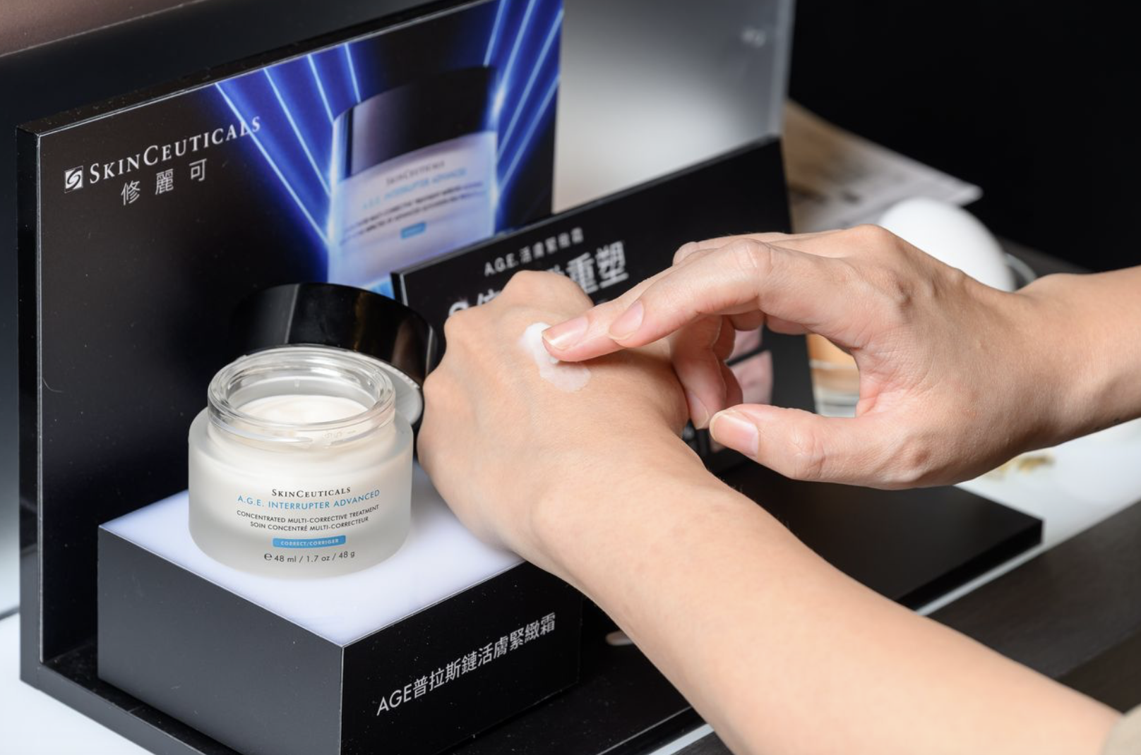 【3】修麗可明星商品展示區:此區展示修麗可肌膚抗氧化&逆轉糖老化二大重要權威級明星產品,一是經修麗可頂尖科研團隊,長達15年以上抗糖化研究保養推薦首選、旗下最強肌膚逆轉糖老化No.1《修麗可AGE普拉斯鏈活膚緊緻霜》以及累積修麗可30年抗氧臨床研究,擁有獨家專利抗氧黄金參數的抗氧化No.1《修麗可超濃度CE緊緻修護抗氧化精華》在此體驗修麗可雙重獨家1+1緊緻撫紋雙權威產品,讓消費者親自解鎖抗老逆齡關鍵。 另有2025年重磅新品-無針抗老雙精華!突破性動態抗皺科技,首創5大活定抗皺科研專利複合胜肽《P-TIOX超胜肽抗皺極光精華》,臨床實證動態淡化九大肌膚深層紋路,及革命性抗老成分III型膠原,模擬嬰兒膠原結構的《三重原生膠原彈嫩精華》,刺激五大關鍵抗老膠原協同,提升肌膚彈性與修復力,從表層到肌底撫紋緊緻,精準打造「全層次抗老修護力」