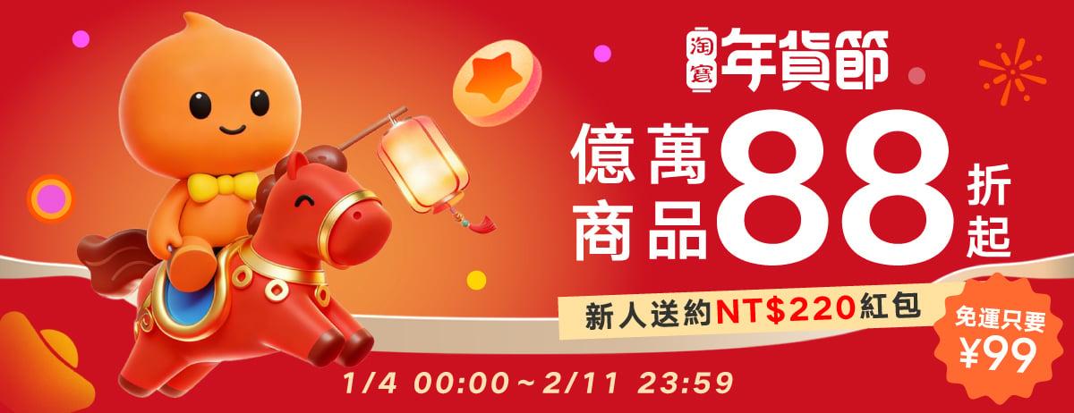 淘寶年貨節熱烈開跑!即日起至2月11日23:59,全站商品享官方立減88折起,億萬商品消費滿人民幣99元免運送到家,無卡族也能選擇7-ELEVEN超商取貨。至2月1日前,天天可搶人民幣299元減20元折扣碼與支付立減券,直郵運費券也能領取,多重優惠疊加使用,折上加折更有感。台灣消費者最愛的尊榮服務也有限時優惠!新用戶可免費升級、既有用戶限時升級享半價。此外,年貨節期間更加碼推出人人有獎活動!加入淘寶LINE官方帳號即可參加「淘寶三重抽」,有機會獲得人民幣50立減10元折扣碼或LINE POINTS,綁定帳號再抽最高LINE POINTS 500點;未使用過淘寶的新用戶完成帳號綁定及首購,還有機會抽中Apple Watch!多家信用卡優惠同步加碼,刷卡消費再享額外回饋。