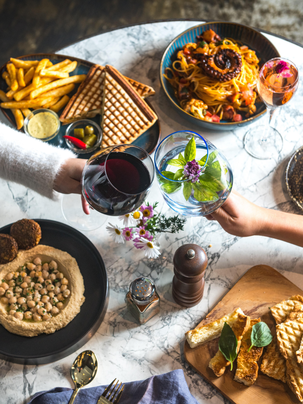 「以酒酌餐」一直是地中海的飲食特色之一,新菜單多了更多精選葡萄酒,產地從法國、西班牙、義大利到以色列,款式多樣、口感豐富,顧客皆可依據喜好挑選自己喜歡的葡萄酒款。調酒系列這次也獨家與Side Bar合作,為Toasteria Cafe量身打造琴酒風味特調,包含: