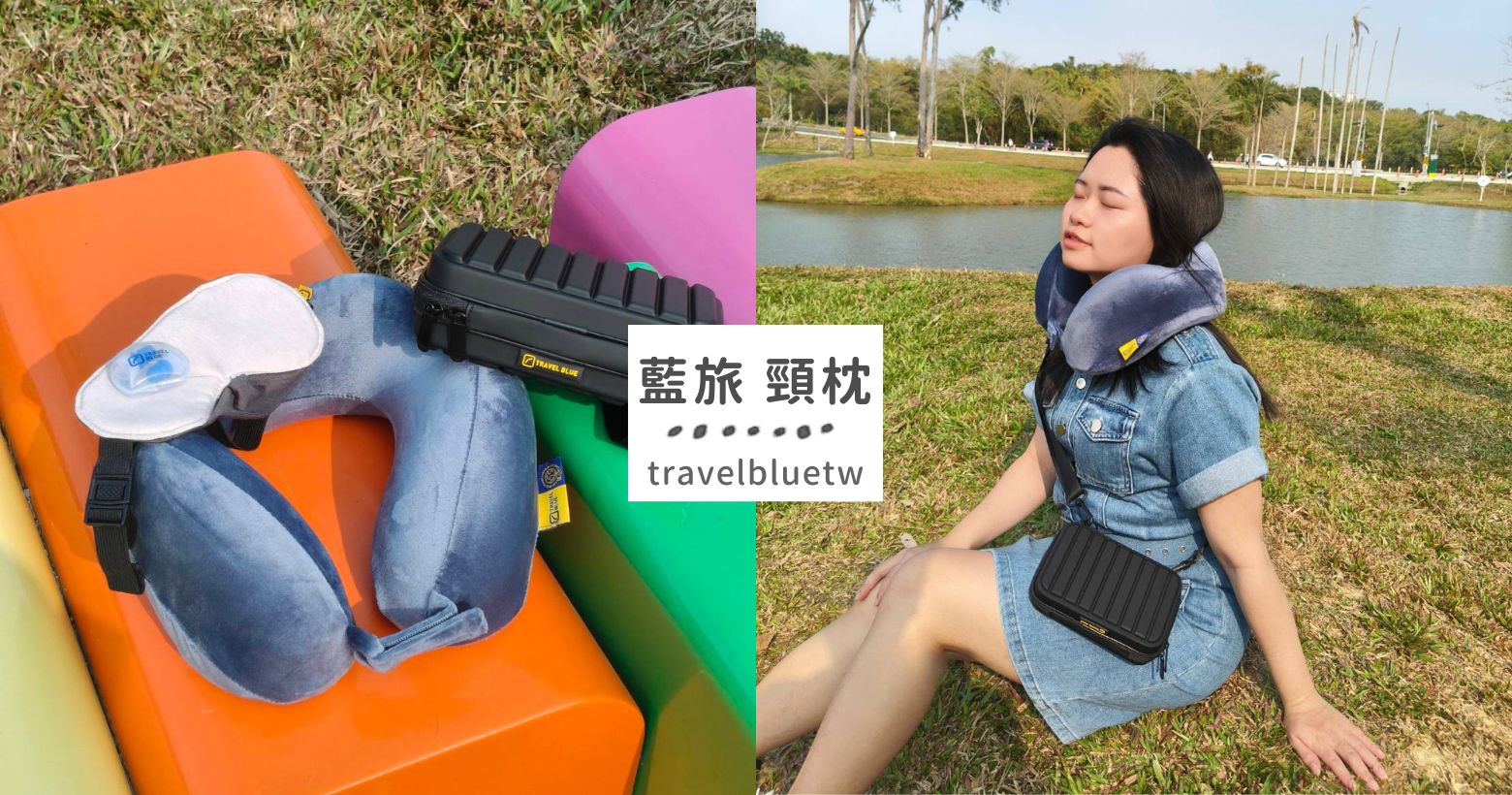 Travel Blue 藍旅旅行好物親膚烤漆斜背包.寧靜頸枕-記憶棉支撐頸枕.高質感眼罩+飛行耳塞