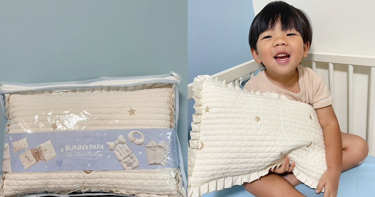 【育兒開箱】柔軟又夢幻的韓系小枕頭|Bunnypapa荷葉邊絎縫枕頭