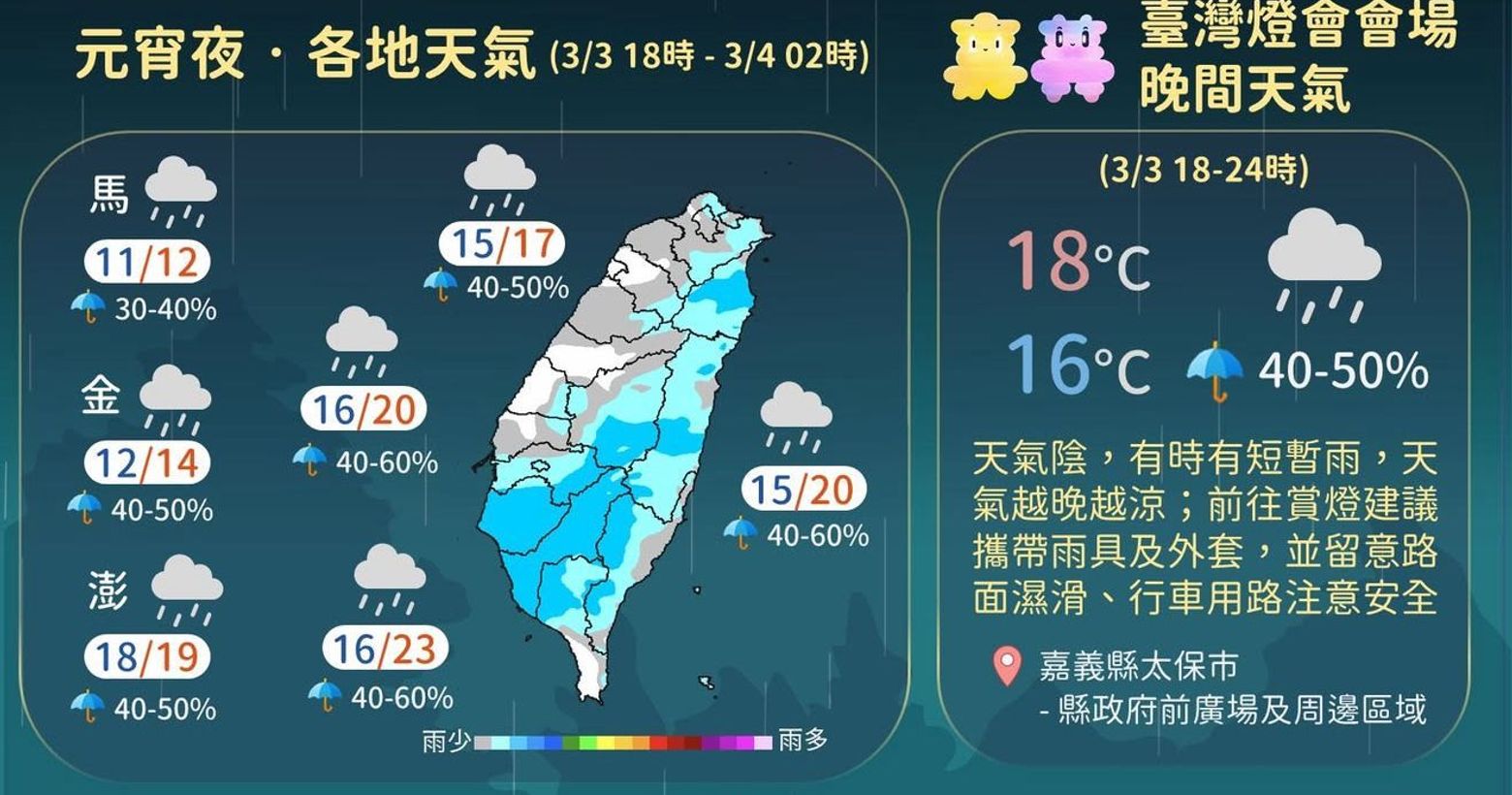 下雨🌧️元宵節天氣一次看!台灣多吉懶人包